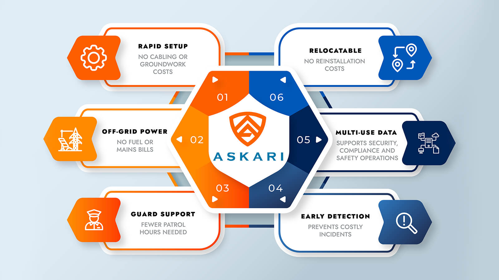 • Rapid repositioning as the environment evolves. Unlike permanent installations, Askari adapts without disruption or infrastructure downtime.